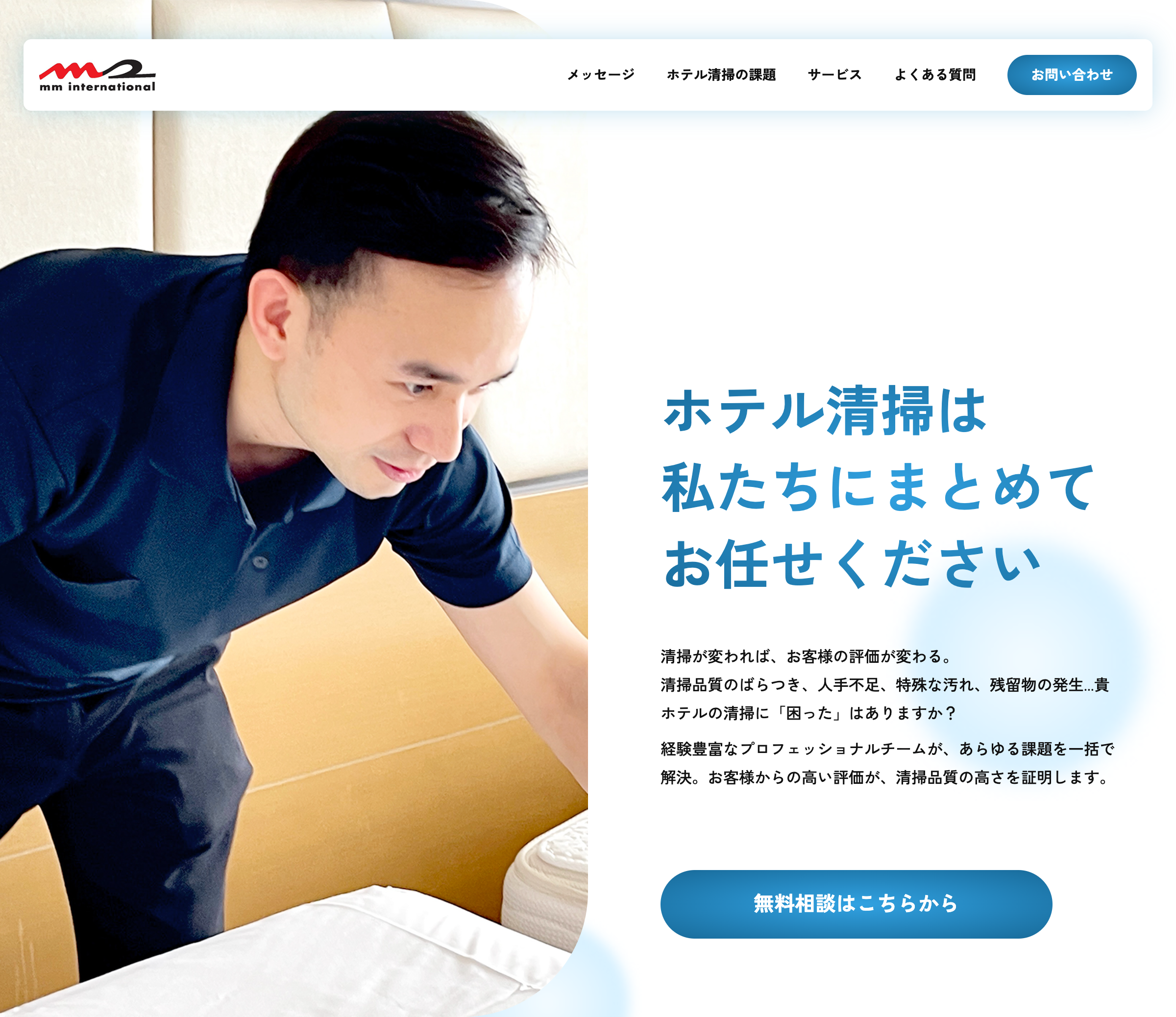 株式会社MMインターナショナル様のホテル客室清掃サービスの紹介ページをWordPressで制作しました。